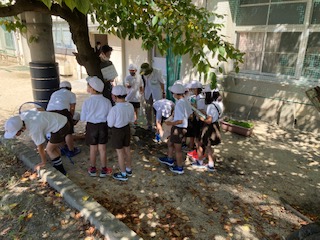 出前授業として大阪市環境局からの出前授業で学校内で生きる生物について教えていただきました。