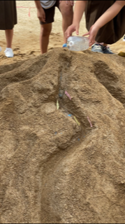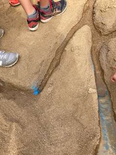 5年生は理科の学習で、流れる水の働きについて学習しています。内側と外側の土の積もり方や流れの速さなど、細かく観察しています。また、実際に自分たちで川を作って実験するなど、意欲的に取り組んでいます。