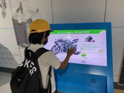 最後に神戸海洋博物館に行きました。神戸港の歴史やいろいろな種類の船について知ることができました。車やバイクに乗ったり、パネルをさわってクイズをしたりと楽しみながら学ぶことができました。