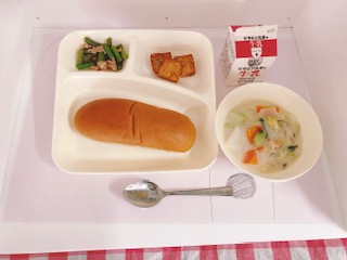 「はくさいのクリーム煮」は、鶏肉、はくさい、たまねぎ、チンゲンサイ、にんじん、生のしいたけを使用し、牛乳とクリームを加えて煮、片栗粉でとろみをつけた中華風のクリーム煮です。