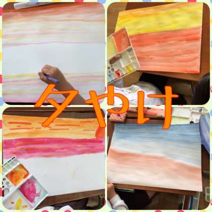 みんな、グラデーションを使ってそれぞれきれいな夕焼け空を描いていました。