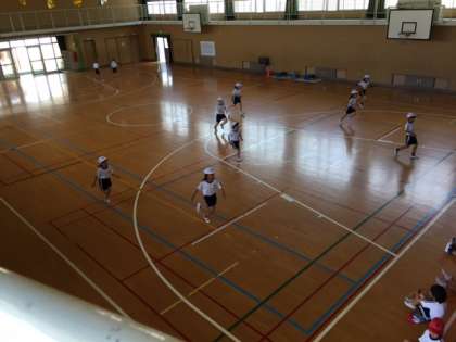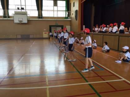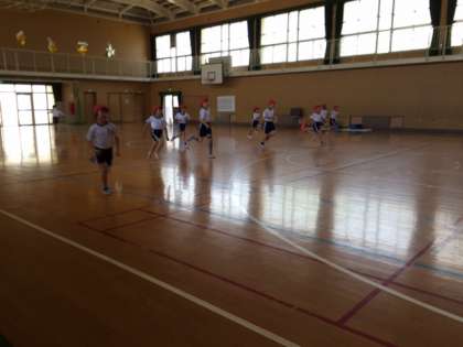 体育の授業では、体力テストの「シャトルラン」をしました。
