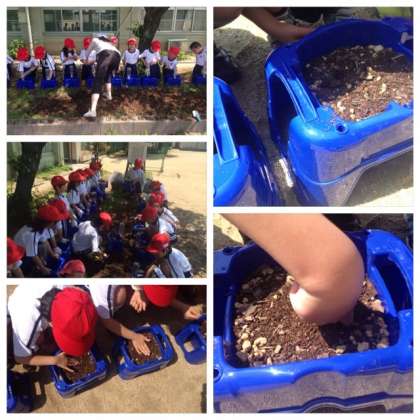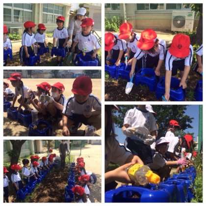 あさがおの種を植えました。土づくりからおこない、石を植木鉢に入れ、ふかふかの土を入れて、種を植えました。植えた後は水やりをしました。次回からは、朝来たら水やりをします。毎日頑張ってお世話をするとはりきっていました。