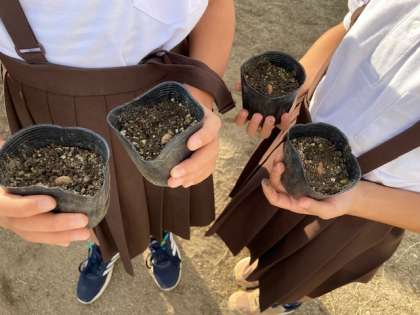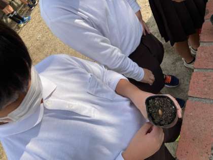 今日、理科の学習でそらまめの種植えを行いました。一人一粒、大きく成長して欲しいという思いを込めてポットに植えました。3センチメートル程度に伸びたら畑に植え替えようと思っています。大きく育ってほしいですね!