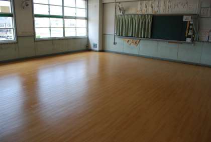 教室を開けると明るく輝いた床が見え、外からの光が床に反射し、とても教室が明るくなりました。