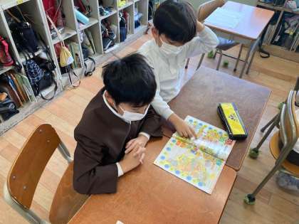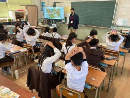 4年生の外国語活動では、アルファベットについて学んでいます。大文字や小文字の違いを意識しながら、アルファベットゲームに取り組んでいます。
