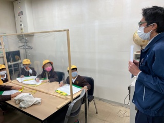 北恩加島小学校の校区にある「かに道楽」さんにインタビューに行った様子です。