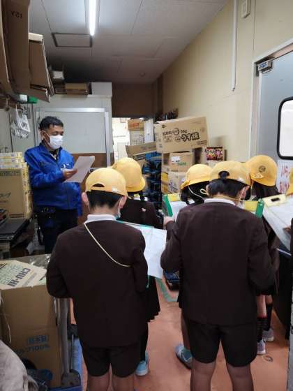 校区にあるスーパー「サンディ」さんにインタビューに行った様子です。