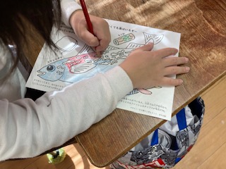 今日は、給食にたらが登場したので、おさかなぬりえに取り組んでいるクラスもありました。とても上手に色をぬることができています!