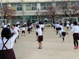 先週から、耐寒なわとびが始まりました。子どもたちは、前とびや後ろとび、あやとびなど様々な技にチャレンジしています。自分の目標に向かってがんばっています。