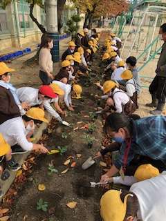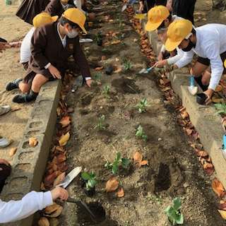元気にすくすくと育った種が芽を出したので、大きな畑に植え替えをしました。