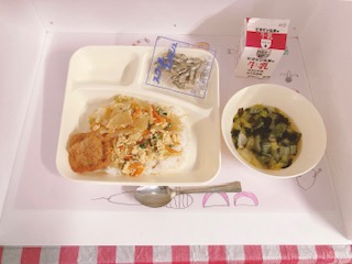 「すまし汁」は、はくさい、だいこん、しいたけ、わかめを使用した汁ものです。