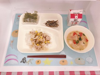 今日の給食には、「ぞう煮」と「ごまめ」が登場しました。