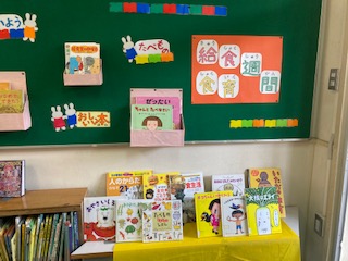 図書室には、食べ物に関する本を特集してくれています。この機会にたくさん読んでみましょう♪
