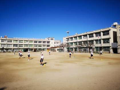 体育科の学習で、ボールけりあそびをしています。感染対策をしながらの学習です。めいいっぱい体を動かすことができる唯一の時間。子どもたちはげんきいっぱいボールを追いかけています!