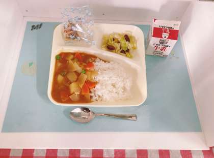 「チキンカレーライス」は、鶏肉を主材にした児童に好評なカレーライスです。