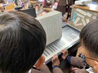 国語科の授業で紙芝居づくりに取り組んでいます。Teamsを使って一年生に発表するということでみんなはりきって練習しています。