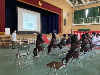 学校薬剤師の先生が来校され、お薬教室をしてくださいました。普段飲んだり貼ったりする薬の仕組みや種類、正しい使い方を教わりました。また、薬物乱用の恐さについてもお話してくださいました。