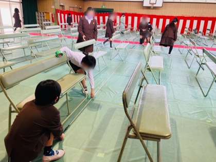 今日は、卒業する6年生のために、5年生が在校生の代表として、心を込めて式場準備や掃除をしてくれました。