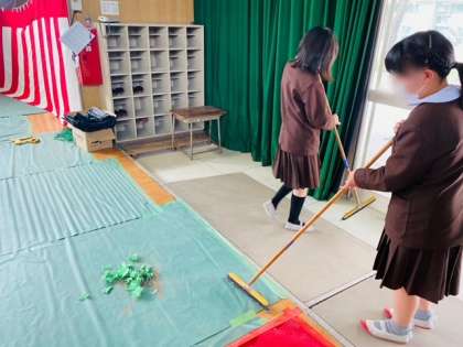 いすをまっすぐになるように並べたり、汚れているところがないようにきれいにしたりして、6年生が気持ちよく参加できるように準備をしました。