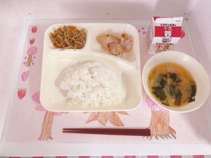 今年度、最後の給食でした。調理員さんに1年間の感謝の気持ちを込めてお礼を言っている児童がたくさんいました。新しい学年になっても、すききらいしないで残さずしっかり食べてほしいです。