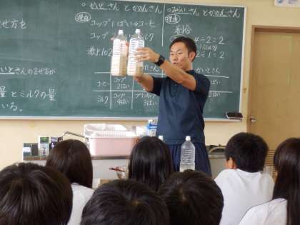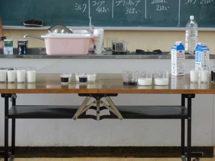 6年の算数科では、「比」の学習が始まりました。導入として、コーヒーとミルクを使って、2つの量の関係について考えていきました。