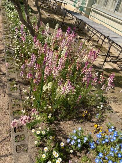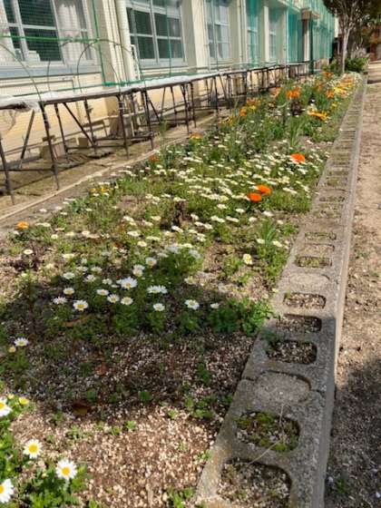 北恩加島小学校には、いろんな花がたくさんあります。何種類の花を見つけられるかな?