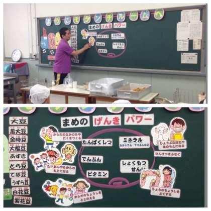初めてのランチルームに行きました。教室とは違う広い机と高い椅子に子ども達は大喜びでした。栄養士の先生が給食に出てくる豆の種類について話をしてくれました。なんと給食には10種類の豆が出てきます。大豆・黒大豆・金時豆・大福豆・あずき・とら豆・てぼ豆・うずら豆・白花豆・紫花豆です。豆にはたくさんの栄養が含まれるので、苦手な人も給食を通して食べられるようになるといいですね。次回は1年1組が行きます。楽しみに待っててくださいね。