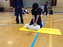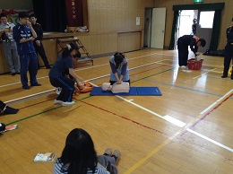 6月9日(火) 講堂にて救急救命講習会を行いました。ないに越したことはありませんが、いざという時のために備えて、胸骨圧迫(心臓マッサージ)とAEDの使用法を教えていただきました。