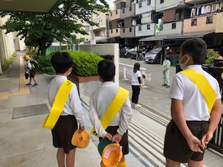 朝から代表の子どもたちが、登校する人たちに元気よくあいさつをしていました。
