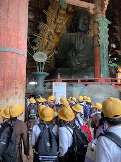 東大寺境内でお弁当を食べた後、大仏殿を見学しました。