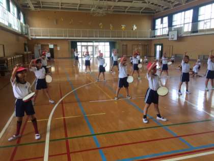 みんな初めての踊りで最初は戸惑っていましたが、6時間目になると少しずつパーランクを打つ音やかけ声を合わせることができました。