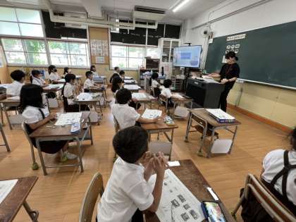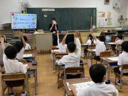 1年生では、「きゅうしょくはかせになろう」というテーマで、学習しました。給食がどんな風に出来上がるのか、給食室にはどんな機械があるのか知ることができました♪給食を残さずしっかり食べたり、食事のあいさつをきちんとすることがとても大切なだと学びました。