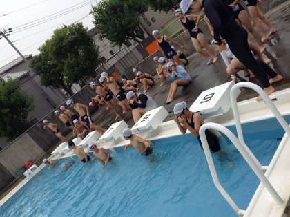 今日は入り方の確認と、クロール、平泳ぎ、背泳ぎの3泳法で泳ぎました。