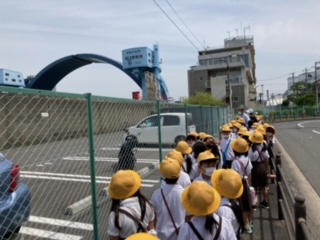 二年生で校区を探検しました。自分たちの校区には、どんな施設やお店、建物があるかを見学しました。公園にも行き、みんなとても楽しそうでした。次は、校区にあるお店や施設のインタビューに行きます。みんなで質問を考えて、しっかり準備していきます。