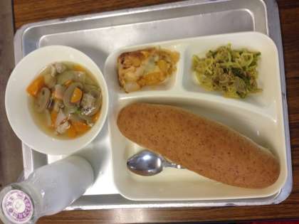 毎月19日は食育の日です。本校では食育の日に栄養指導を行ったり、先生方に「給食の思い出」のインタビューをしています。今日のインタビューは校長先生でした。校長先生が子どもの時の給食にはクリームパンやコーヒー牛乳が出たこともあるそうです。北恩加島小学校の給食も毎朝調理員さんが作ってくれています。残さずしっかり食べましょう。