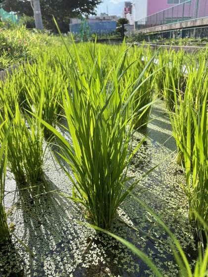 強い日差しの中、稲は青々と逞しく育っています。あっという間に15cmものさしで高さを測れなくなりました。