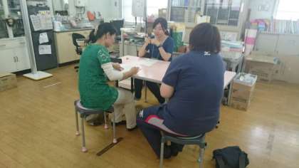 今日は、北恩加島小学校で国語、算数、音楽、保健体育、養護教諭。泉尾東小学校で特別支援、英語、理科、社会、図画工作、家庭のグループに分かれて教科交流会が行われました。この形での取り組みは昨年度から行っているので、先生方は慣れたもの。指導法や子どもの様子、各校の取り組みなど、ふだんあまり知ることのない情報を交換し合いました。これから出前授業や相互授業参観、実技研修会などそれぞれの部会で行われます。その成果や計画を夏休みに2回目の合同研修会で報告し合います。子どもたちのために、学校を越えて、活発に教育活動を進めていきます。