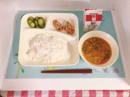 「豚肉のたつたあげ」は、豚肉にしょうが汁、料理酒、こいくちしょうゆで下味をつけ、片栗粉をまぶし、なたね油であげます。