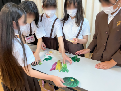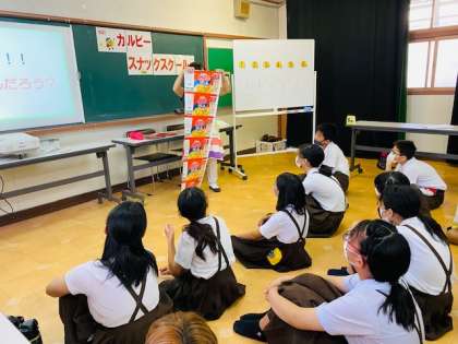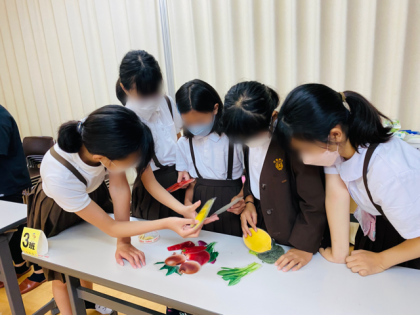 2時間目は、スナック菓子を使って、どんな野菜が入っているか話し合いました。予想していていなかった野菜も入っていて子どもたちは驚いていました。