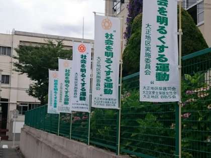 いつもお世話になっている保護司の方が、正門に幟(のぼり)を設置してくださいました。社会を明るくするために、学校でも子どもたちの健全育成と夏の巡視に取り組んでいきます。お家でも夏休みを前に、規則正しい生活についてなどお子さんとお話ください。