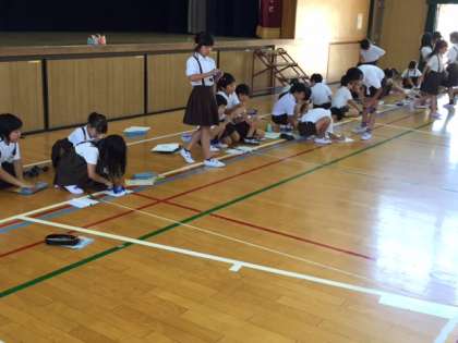 6月29日(月)、本日の3時間目に体育館にて「ゴムの力」についての実験をしました。