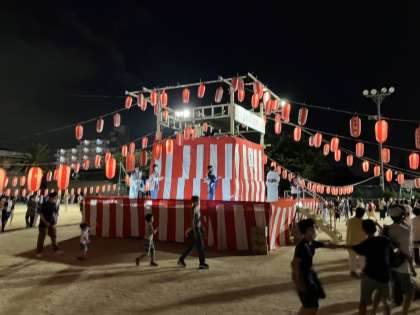 「北恩加島地域まちづくり実行委員会主催の盆踊り大会」が3年ぶりに北恩加島小学校において開催されました。2日間にわたって、たくさんの子どもたちの笑顔がひろがりました。子どもたちにとって、楽しい夏の思い出が刻まれました。