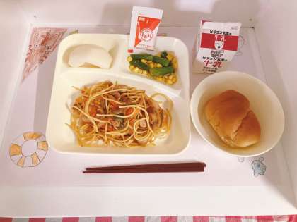 「イタリアンスパゲッティ」は、豚肉、ウインナーを主材に、たまねぎ、にんじん、ピーマン、マッシュルームを使用したケチャップ味のスパゲッティです。
