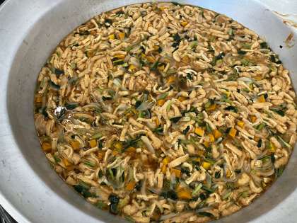 「鶏肉のてり焼き」は、料理酒、砂糖、みりん、こいくちしょうゆで下味をつけた鶏肉を、焼き物機で焼きます。