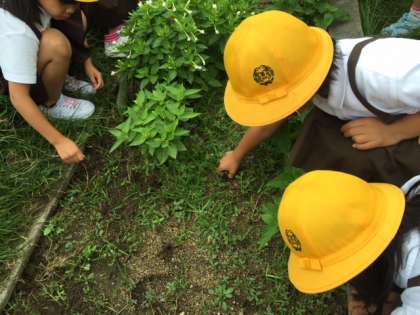 どの植物もどんどん大きくなり、子ども達は「めっちゃ大きくなってる」と驚いていました。観察した後は雑草抜きをしました。