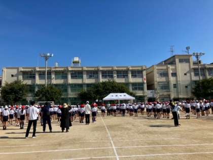 爽やかな秋晴れのもと、運動会の全体練習を行いました。運動会本番に向けて、朝一番からみんなでがんばりました。