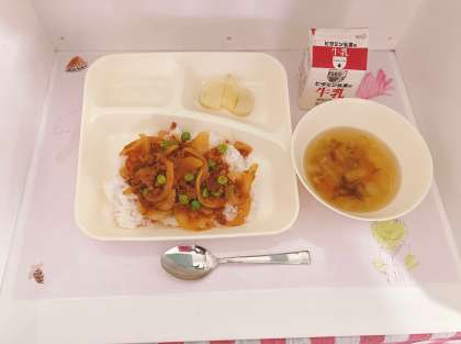 「タコライス」は、沖縄料理のひとつです。いためたひき肉、たまねぎをカレー粉、ケチャップ、ウスターソースなどで味つけし、青みにグリンピースを使い、ご飯の上にかけて食べます。
