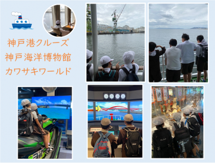 神戸港に出かけてきました。震災メモリアルパークでは、阪神淡路大震災の被害の様子を知り、地震の恐ろしさを感じました。海洋博物館では船や神戸港の歴史、カワサキワールドでは川崎重工業の技術のすばらしさにふれました。神戸クルーズでは、涼しい潮風を受けながら海上から工業地域、神戸空港、ポートアイランドを眺めました。