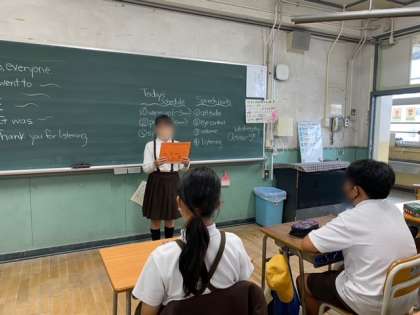 今日は、外国語の学習で、スピーチの発表をしました。視線や姿勢に気をつけながら、夏休みについて伝えることができました。